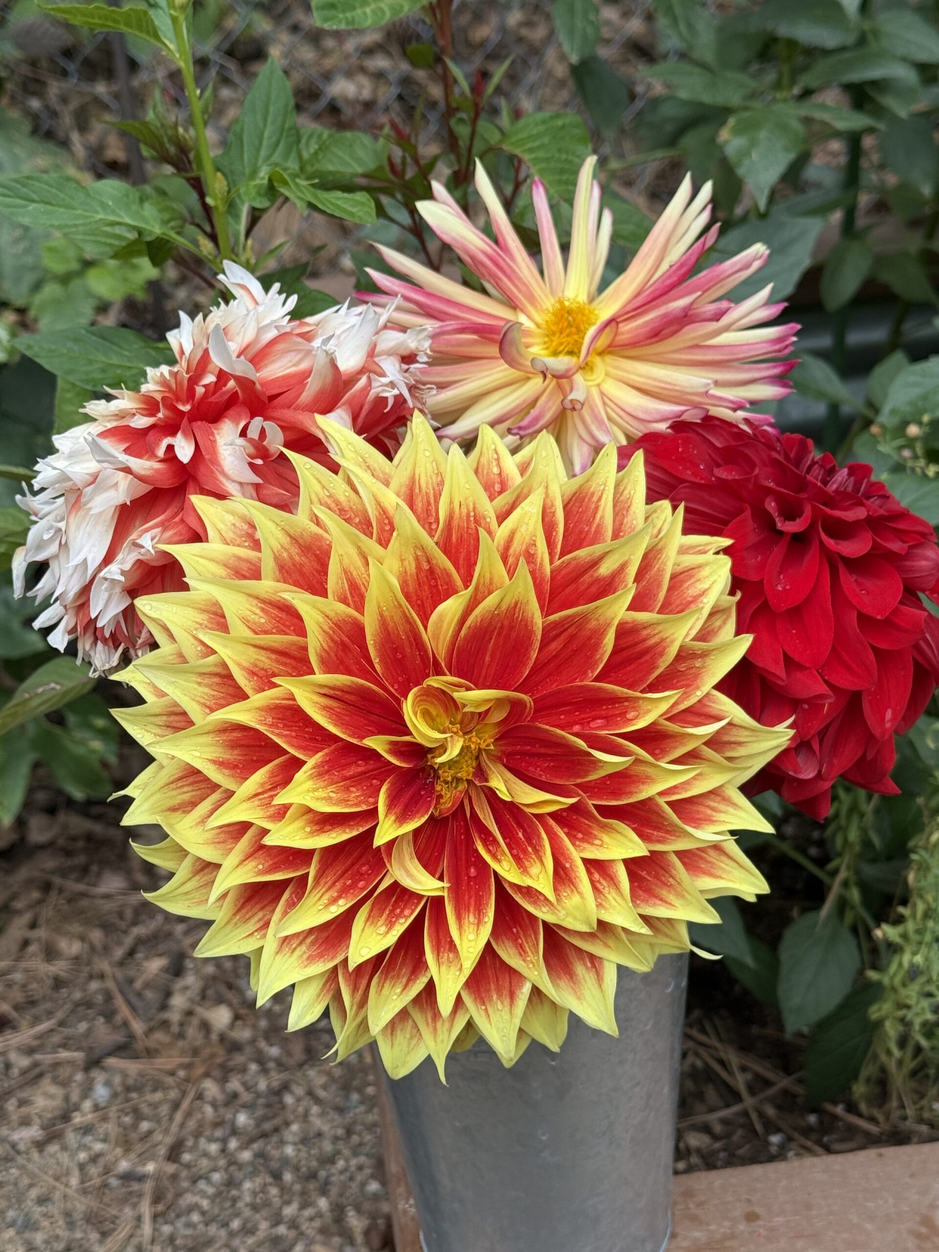 Dark red orange center with yellow tips. Ketchup and mustard is easy to identify and it’s a hit with buyers. Excellent cut flower
