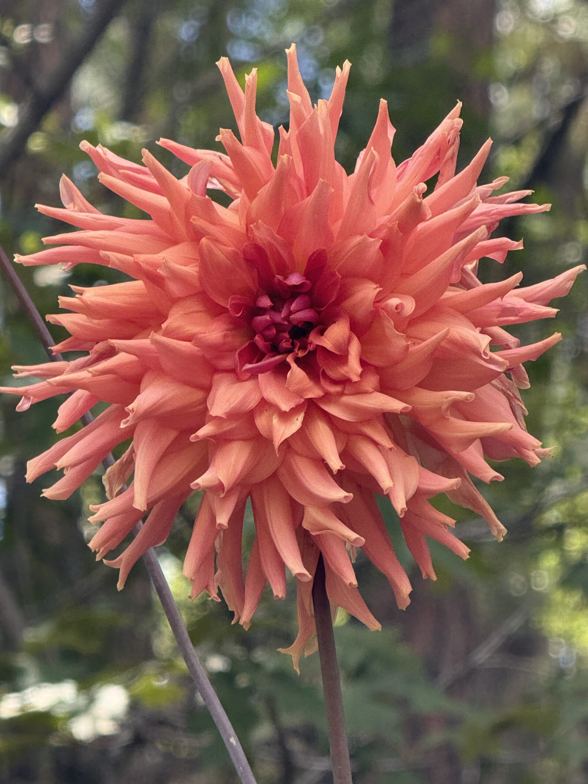 This butterscotch and warm amber colored dahlia is so unique with its long stems and fluffy petals. A great addition to any garden.